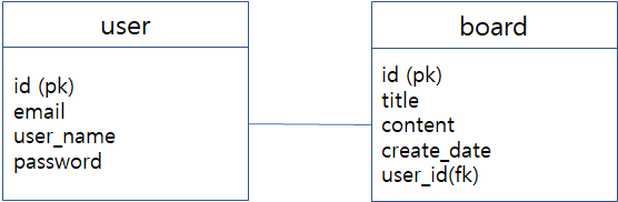 간단한 게시판이므로 테이블의 관계는 위 사진과 같습니다.
