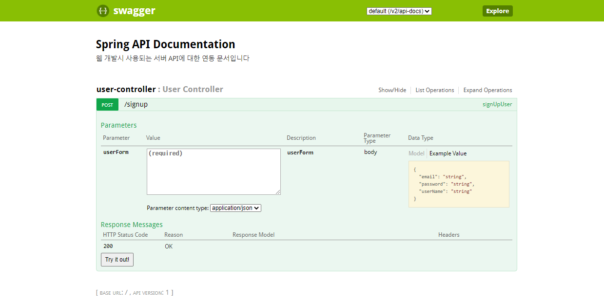 값을 넣고 아래 Try it out!을 클릭합니다.
