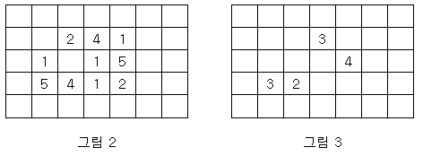 지구 온난화로 인하여 북극의 빙산이 녹고 있다. 빙산을 그림 1과 같이 2차원 배열에 표시한다고 하자. 빙산의 각 부분별 높이 정보는 배열의 각 칸에 양의 정수로 저장된다. 빙산 이외의 바다에 해당되는 칸에는 0이 저장된다. 그림 1에서 빈칸은 모두 0으로 채워져 있다고 생각한다.