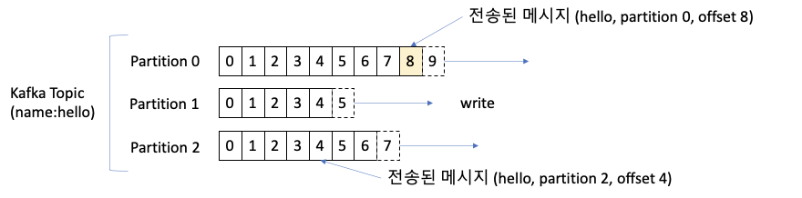 - 특정 파티션에 key값을 지정하지 않는 경우 랜덤한 파티션에 데이터가 저장되게 된다.