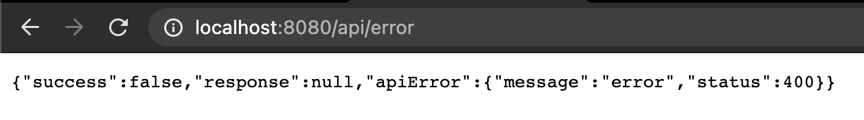 요구사항에 맞게 success 는 boolean 값, response에는 응답 값 에러가 있다면 ApiError를 이용합니다.